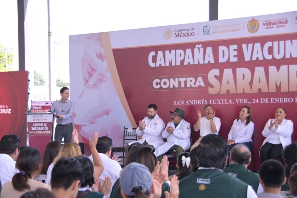 San Andrés Tuxtla, Ver., 24 de enero de 2026.- En un acto de total coordinación entre el Ayuntamiento de San Andrés Tuxtla y el Gobierno del Estado que encabeza la Ingeniera, Rocío Nahle García, arrancó en la ciudad, la campaña estatal de vacunación contra el Sarampión.